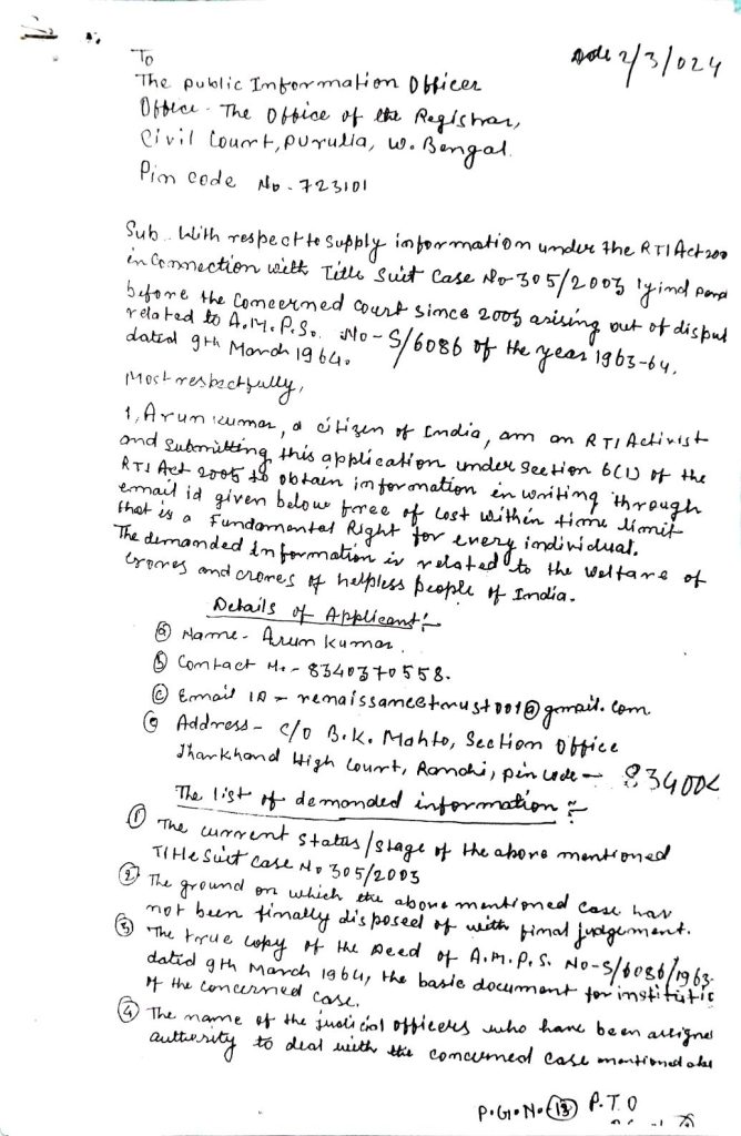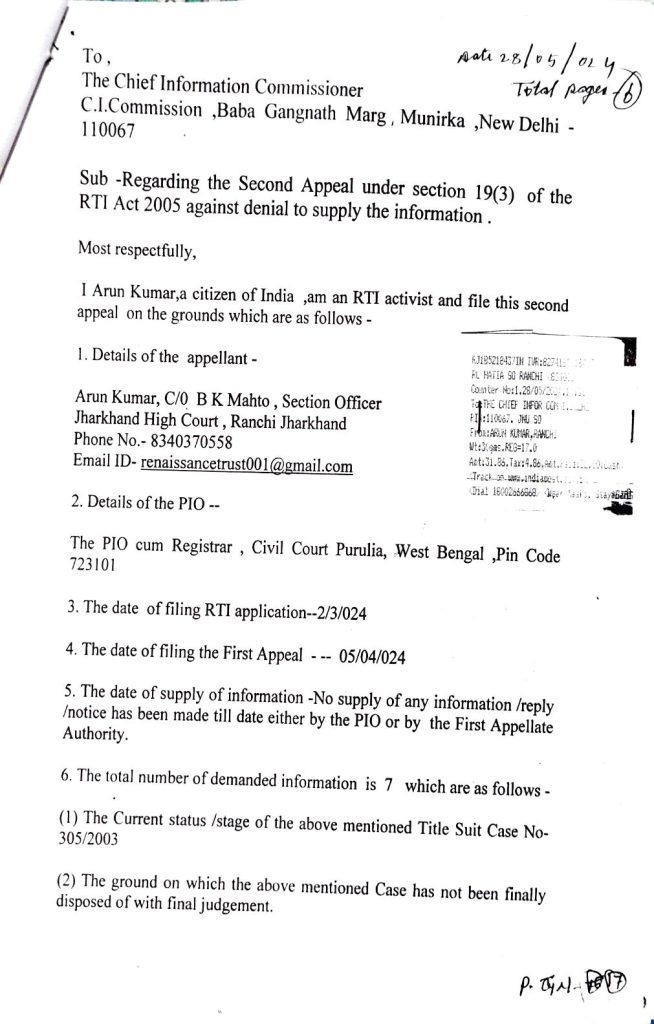 This case is further connected with unresolved proceedings under the RTI Act, 2005, including: